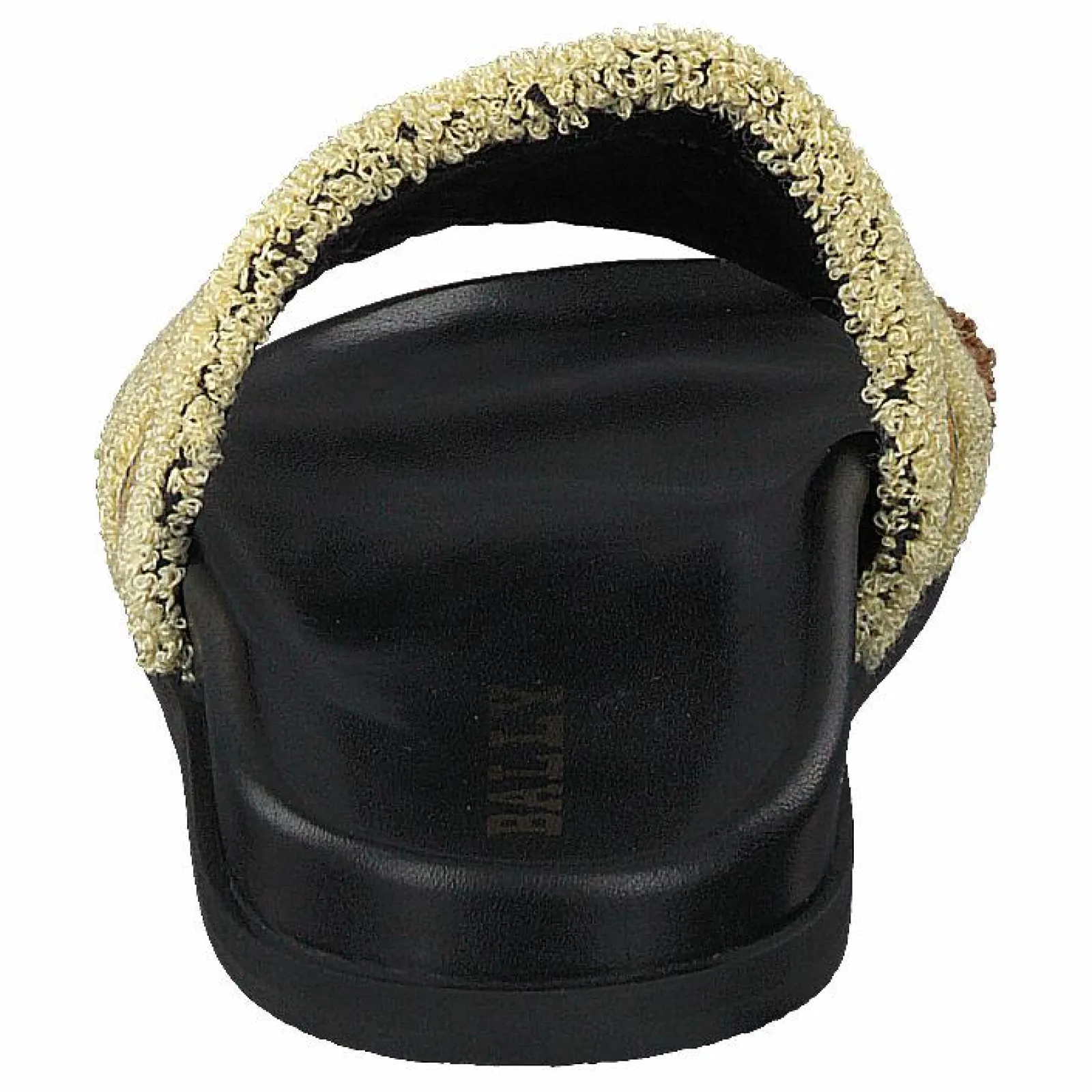 Pool Bally Sandal är en söt och bekväm sandal med en vit och brunrandig ovandel. Den har justerbar spännestängning med en vävd tygrem. Sulan är gjord av gummi, så denna sandal är perfekt för att gå på het asfalt.