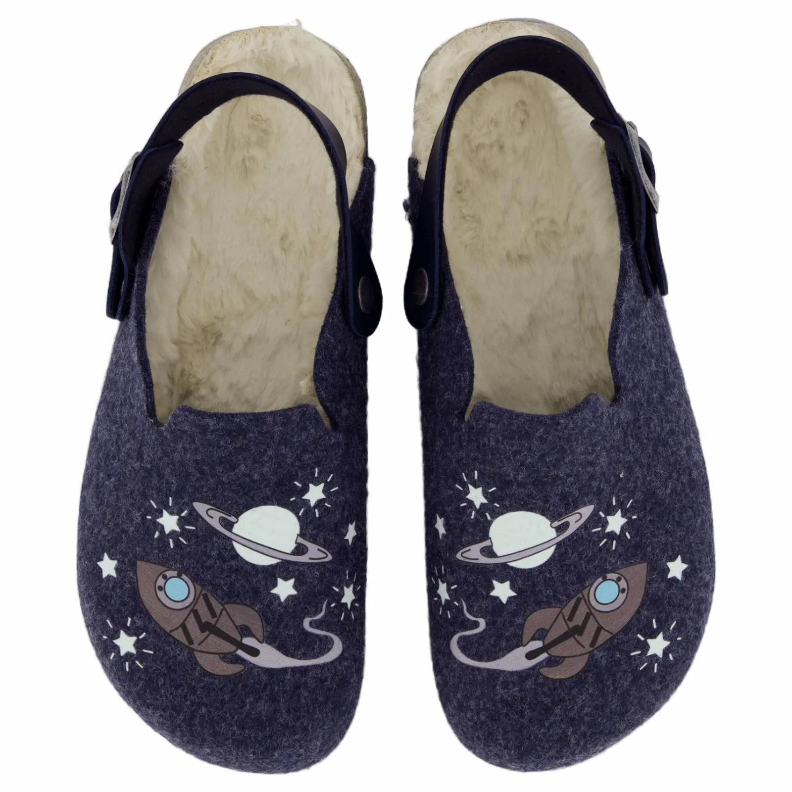 Denna veganska FUSSBETTPANTOFFEL från superfit är fantasifull och absolut snygg. Träskornas mjuka ovanmaterial med sin filtlook och ljusa tryck får barnhjärtan att slå snabbare. Den gjutna korkfotbädden täckt med plysch gör varje steg bekvämt. Oavsett om det är hemma, på dagis eller i skolan. Den färgkoordinerade sulan på remmen ger FUSSBETTPANTOFFEL en cool look.