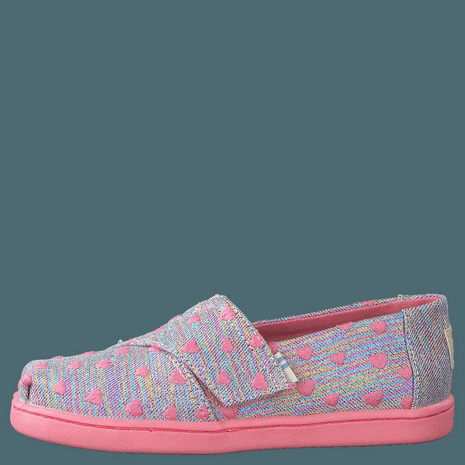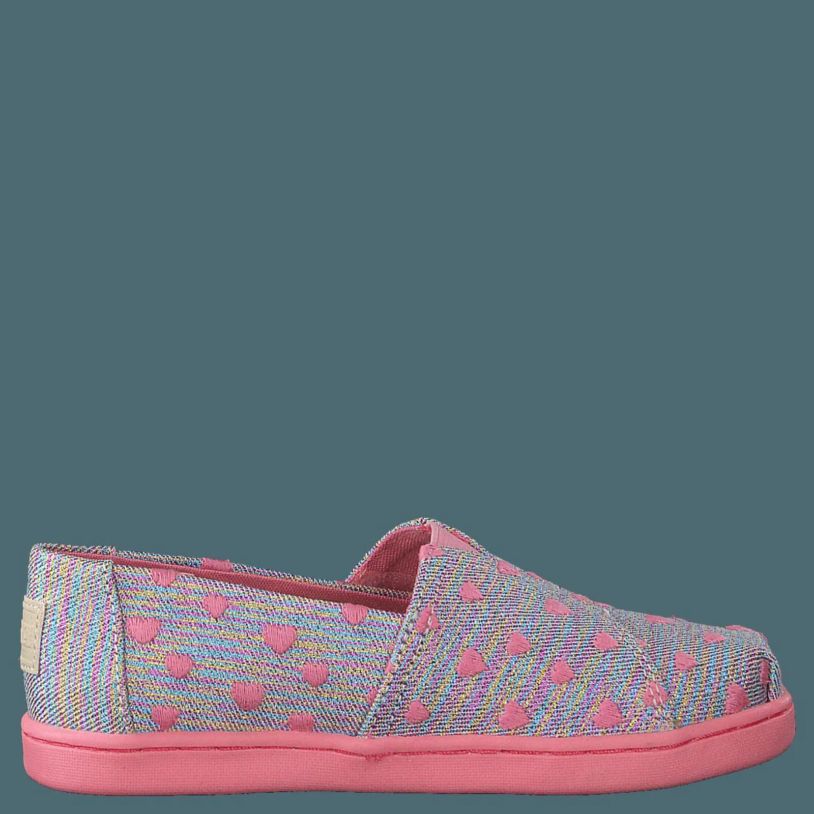 Toms är ett känt märke som erbjuder ett urval av skor för barn. De platta skorna är gjorda av textil och finns i beige, blå och rosa färger.