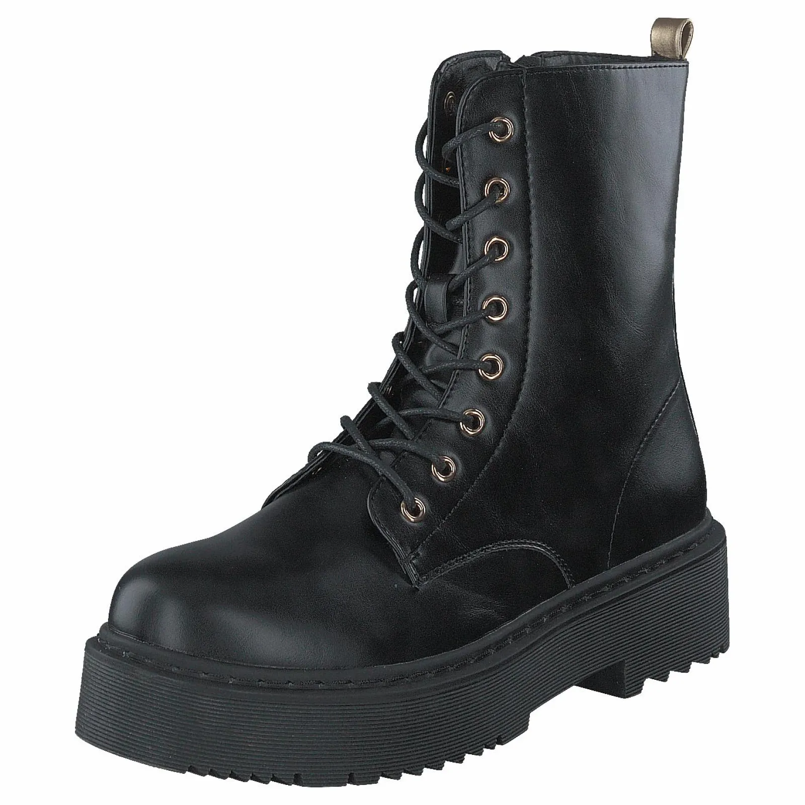 Stövel med trendiga detaljer i guld, snörning men med dragkedja på insidan, ovandel i syntet, med mjukt fleecefoder.