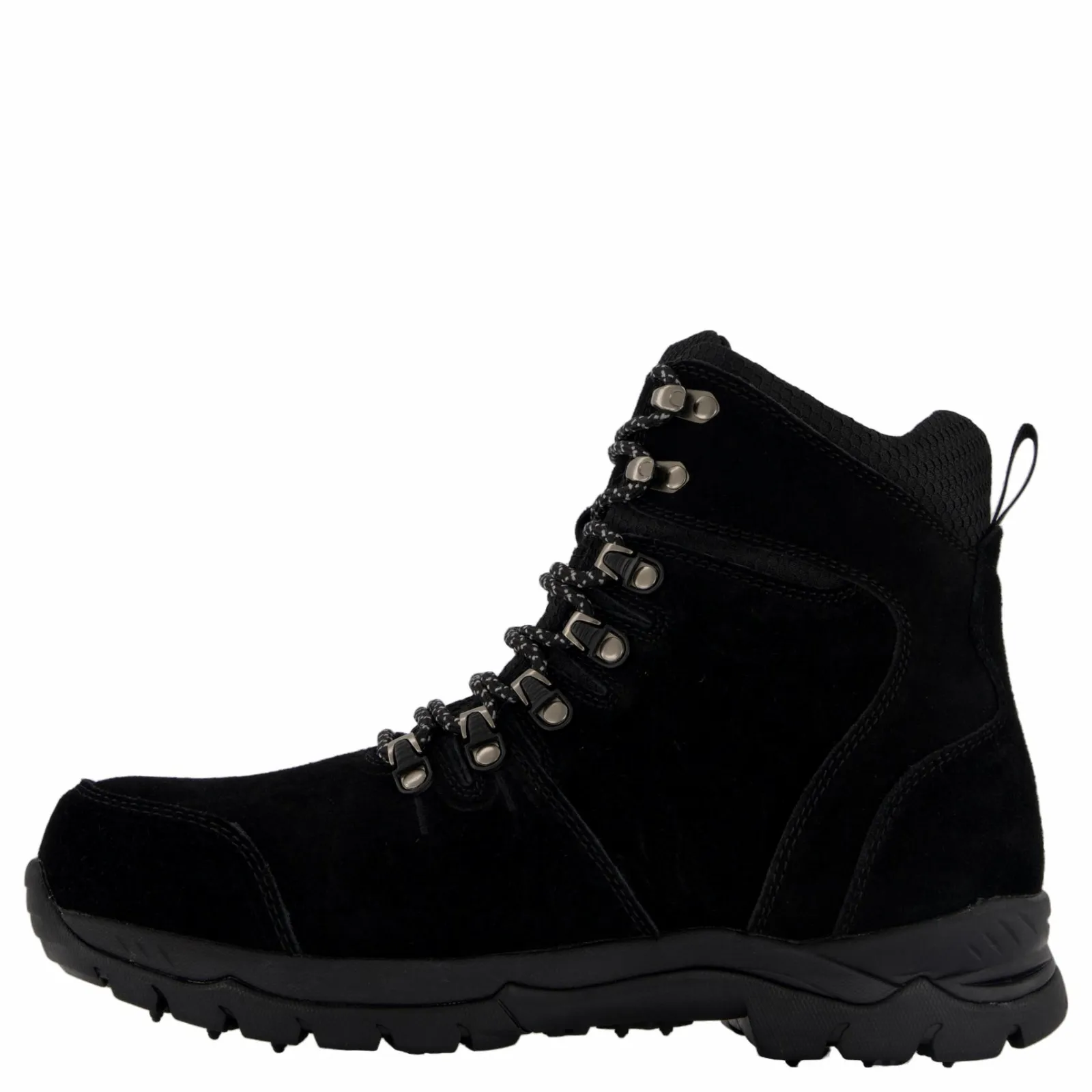 Eskimo snörstövel av äkta mocka på ovandelen. Den har ett varmt syntetfoder och innersula. Den har extra stoppning runt ankeln och längs plösen för bästa komfort. Dragkedja på insidan av skaftet för enkel av- och påtagning. Rejäla öglor och krokar för att enkelt snöra och anpassa stöveln efter foten. Sulan har 16 tungstensdubbar och 15 gummidubbar. Dessa ståldubbar tillåter normal gång även på is och slask. Gummidubbarna däremot hjälper till när det finns halkrisk, till exempel på hårda golv som i butiker.
