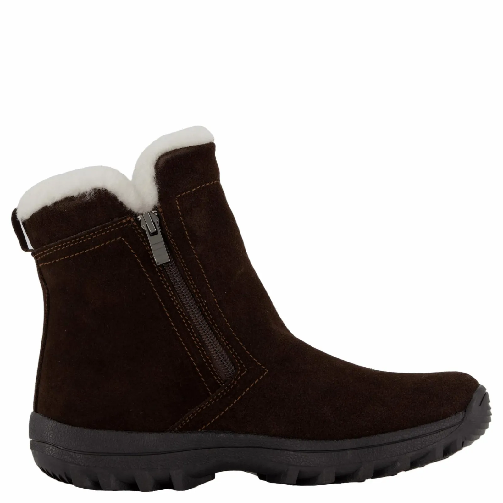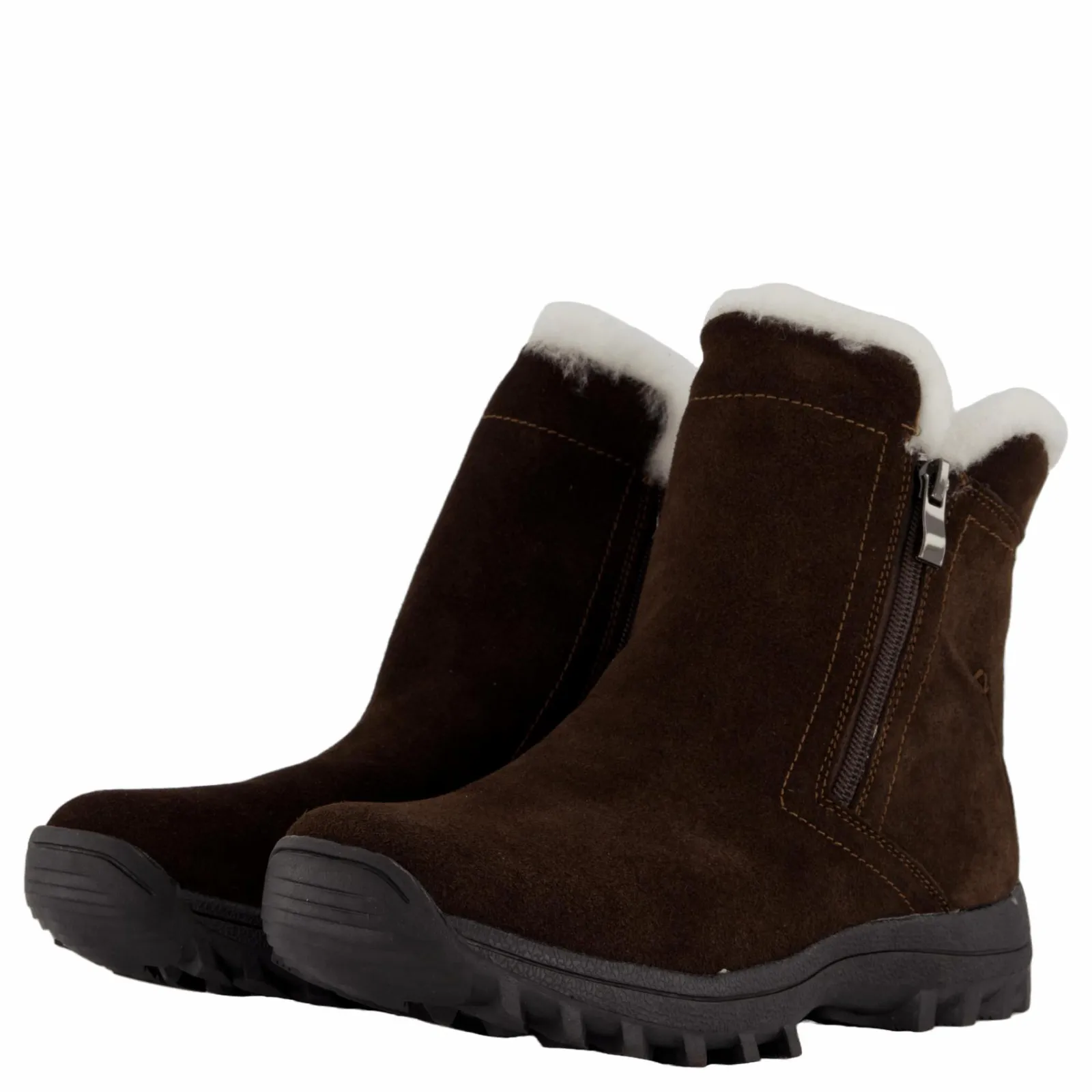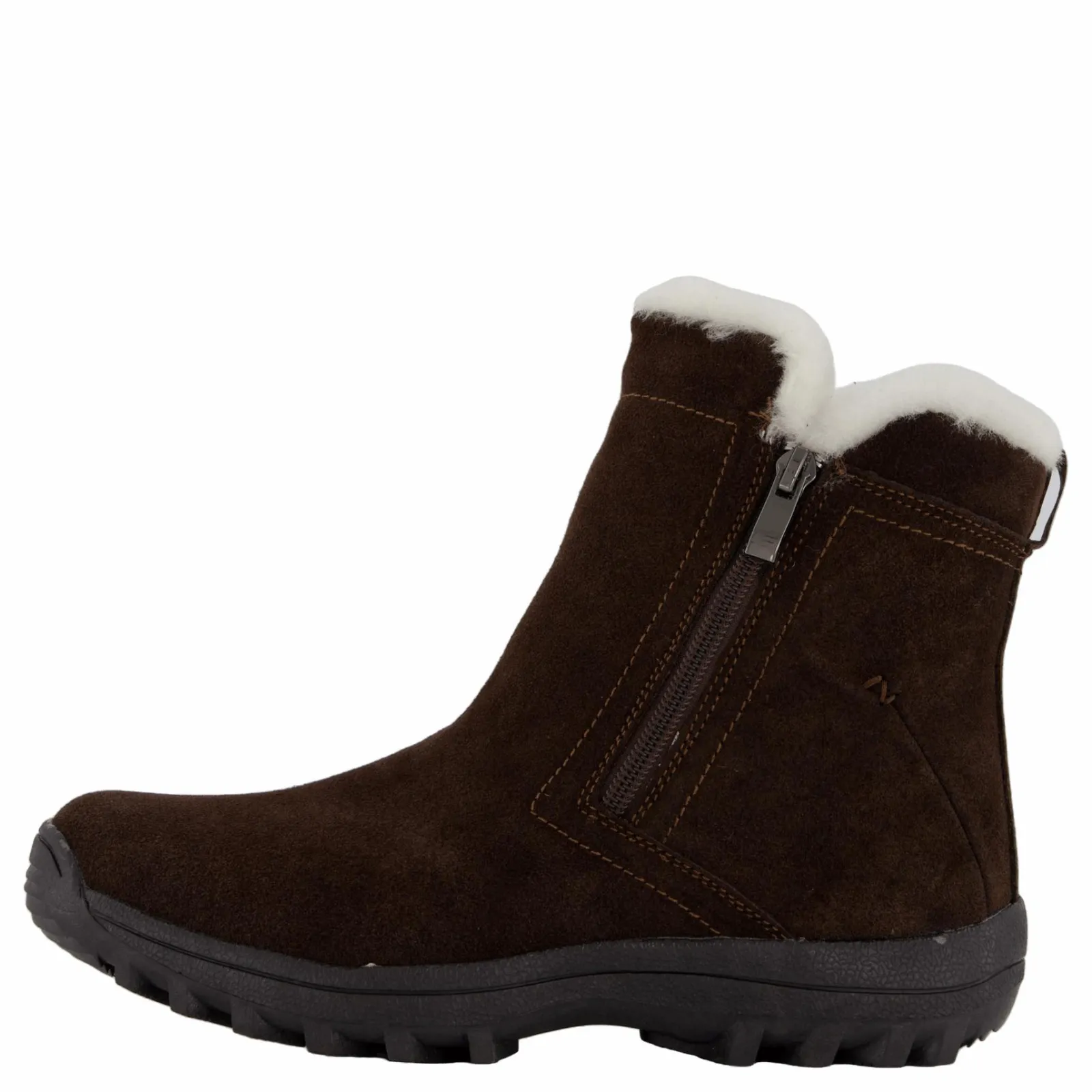 Varmfodrad känga med sula med mycket gummi och grepp. Fårskinnsfoder även i innersulan. Lös innersula. Dubbla dragkedjor för enkel på/av. Förimpregnerad vattenavvisande mocka.