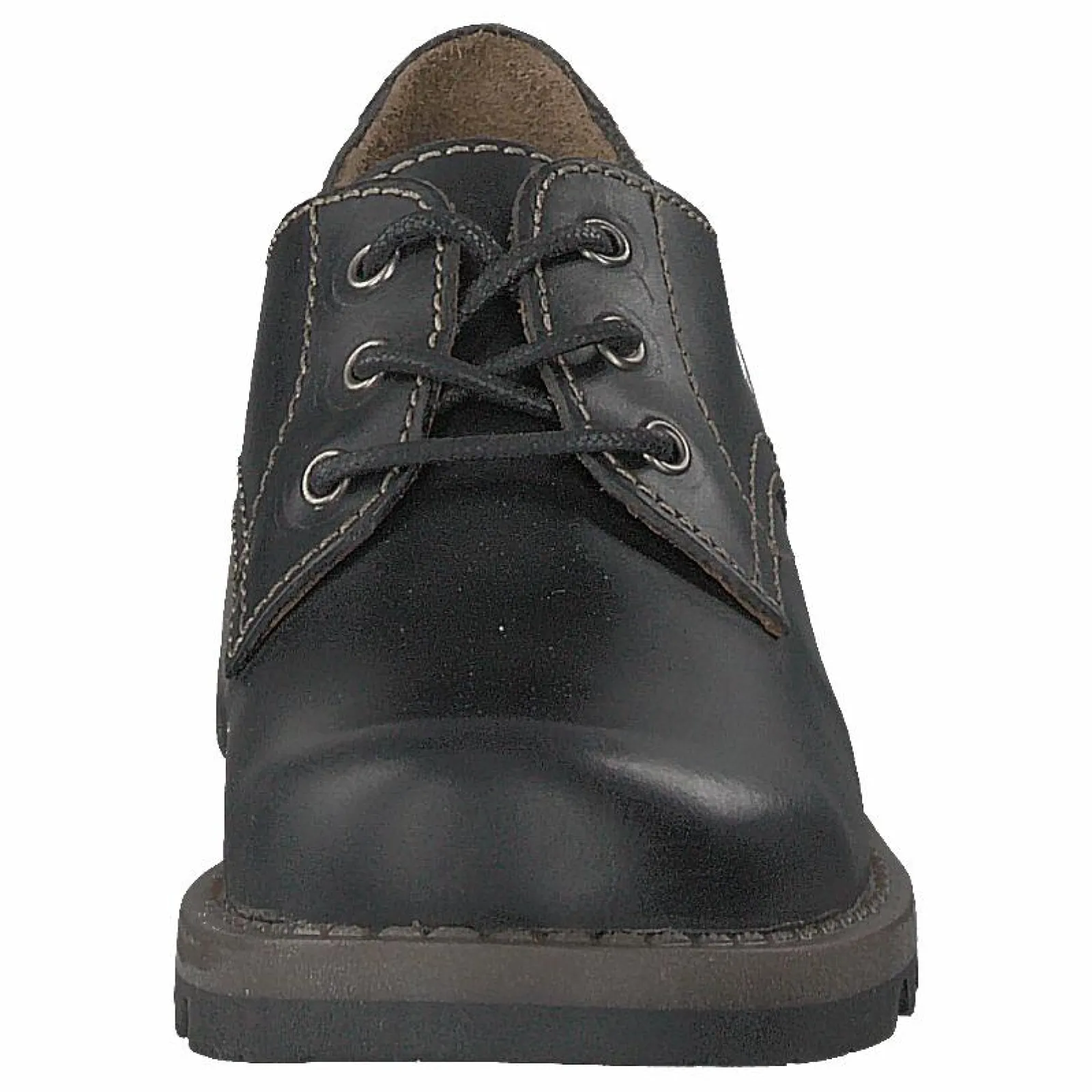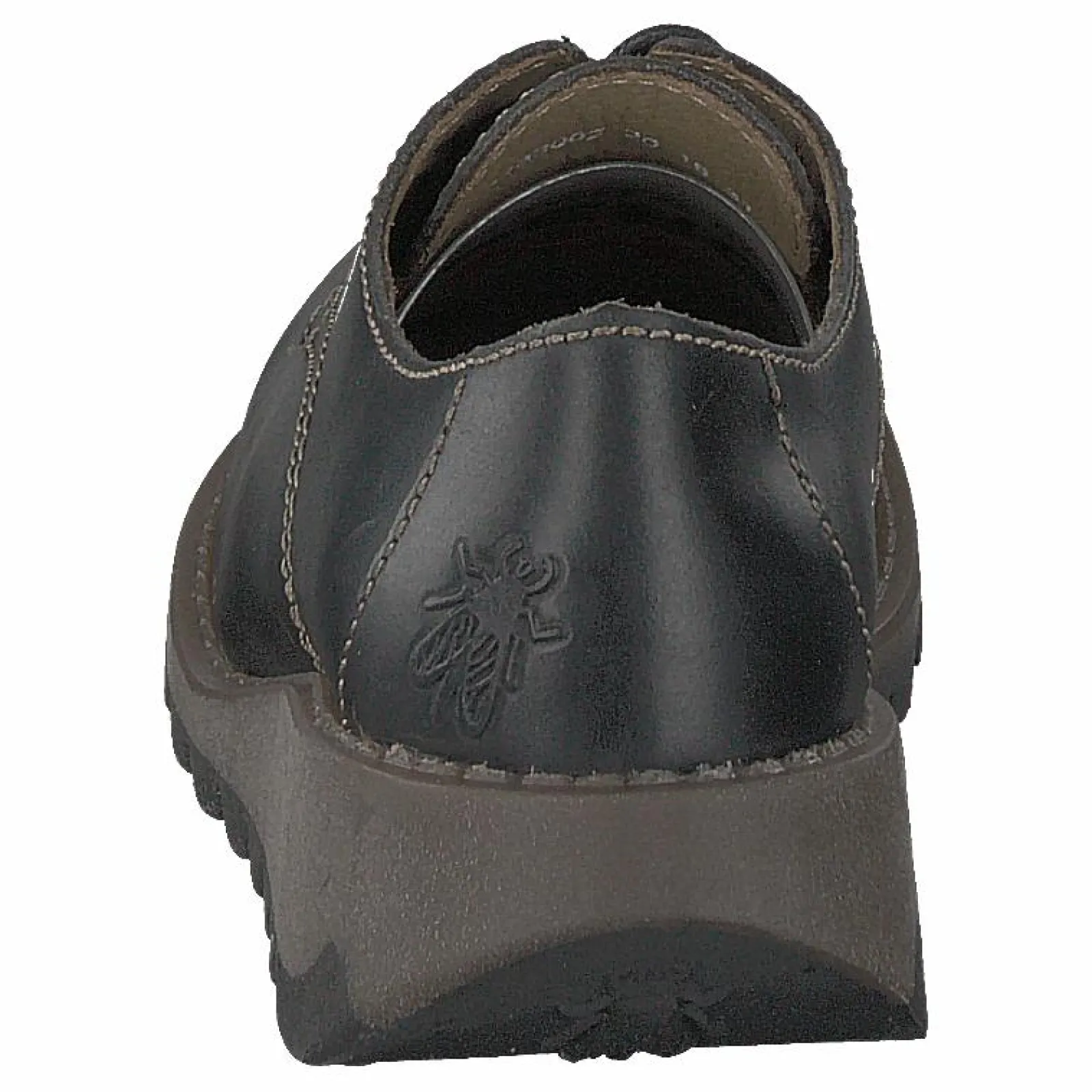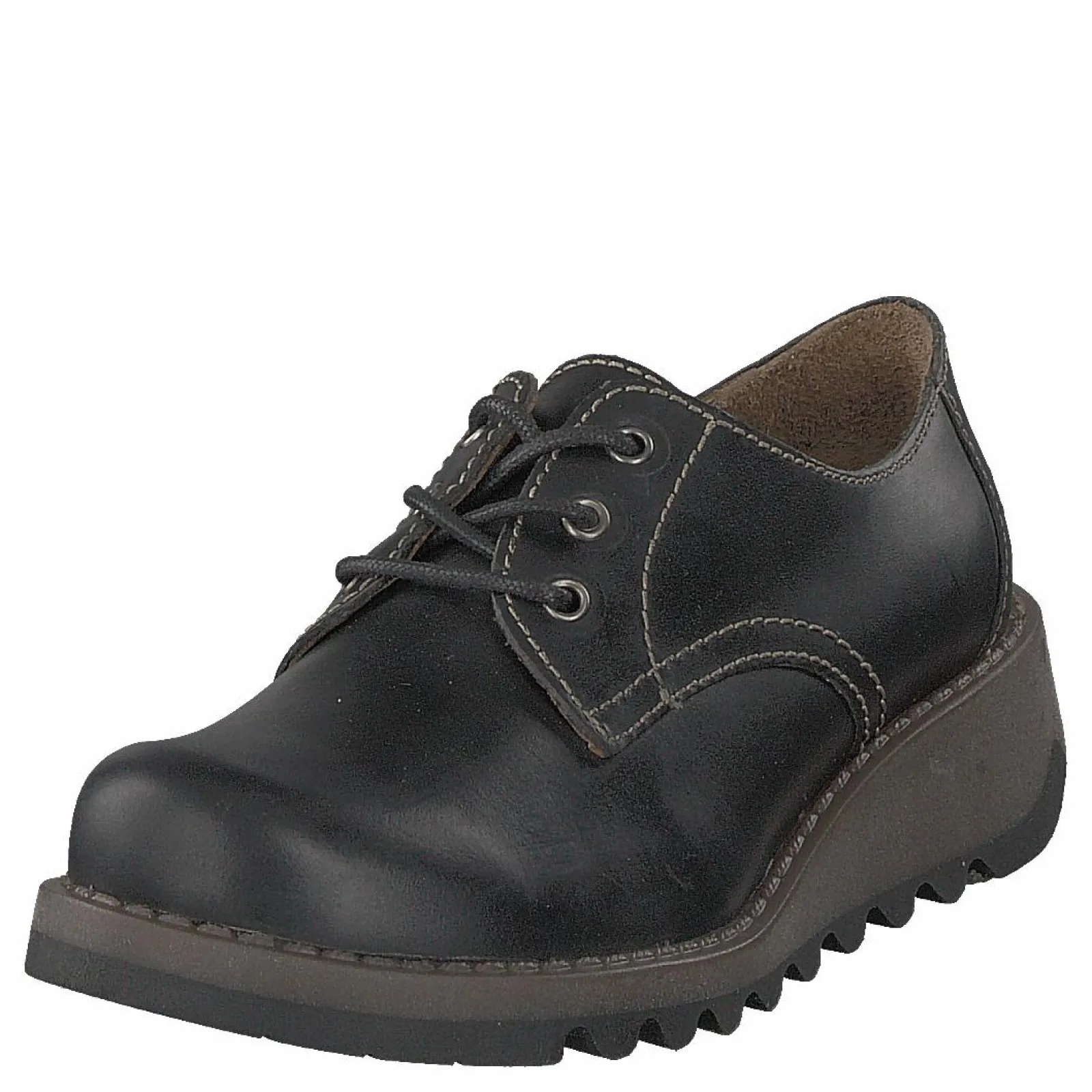 Svart läder Simb K från Fly London barnskosortiment. Denna fritidssko har en ovandel i läder och en elastisk överlinje.