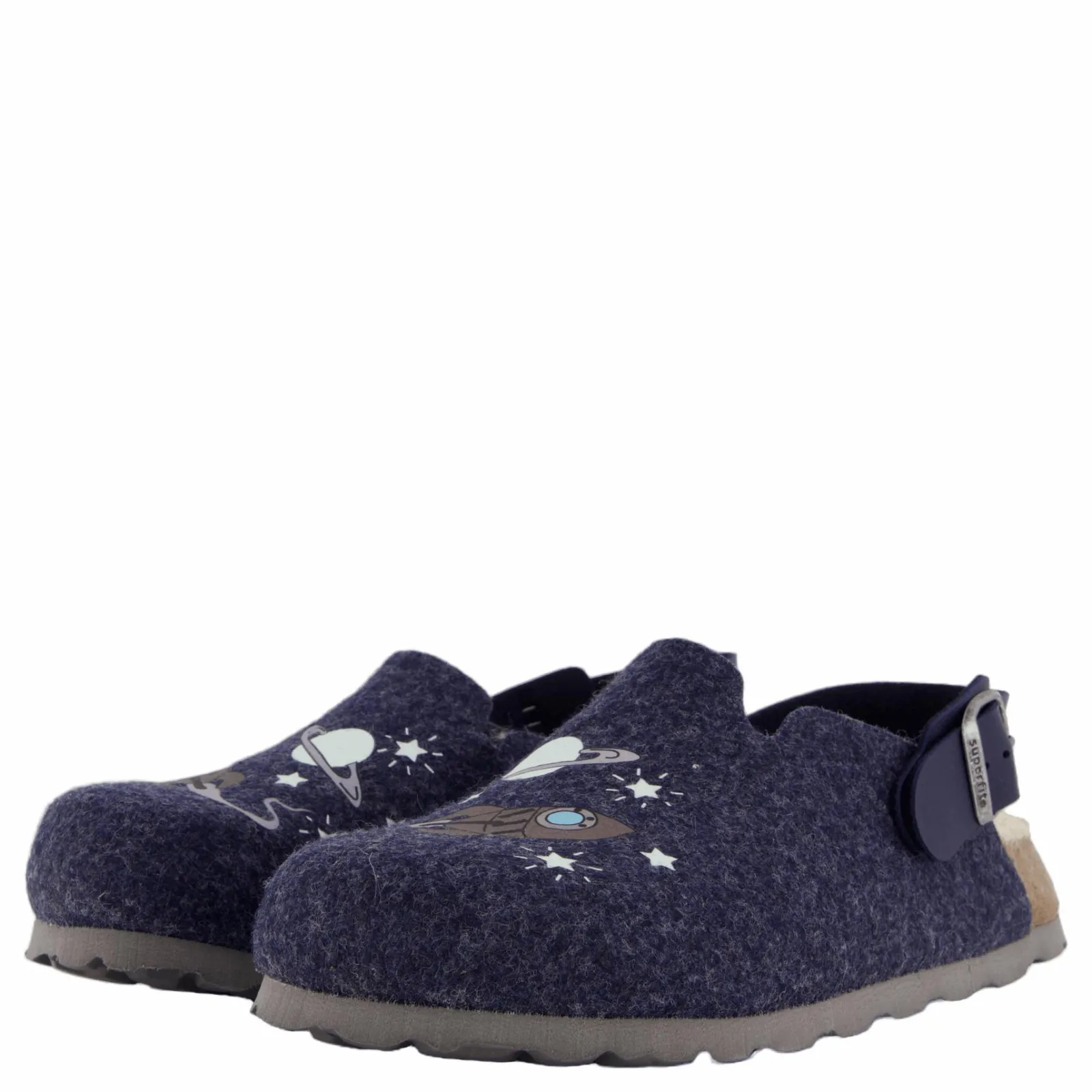 Denna veganska FUSSBETTPANTOFFEL från superfit är fantasifull och absolut snygg. Träskornas mjuka ovanmaterial med sin filtlook och ljusa tryck får barnhjärtan att slå snabbare. Den gjutna korkfotbädden täckt med plysch gör varje steg bekvämt. Oavsett om det är hemma, på dagis eller i skolan. Den färgkoordinerade sulan på remmen ger FUSSBETTPANTOFFEL en cool look.