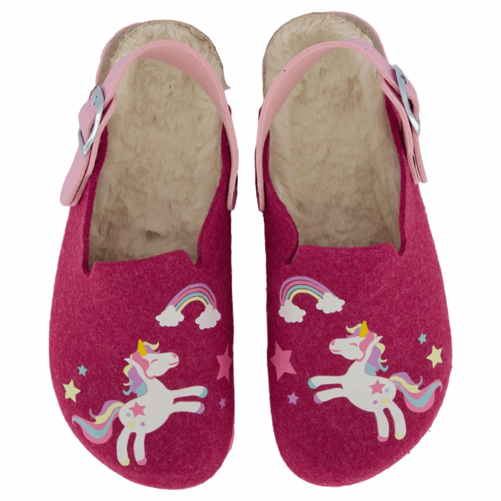 Denna veganska FUSSBETTPANTOFFEL från superfit är fantasifull och absolut snygg. Träskornas mjuka ovanmaterial med sin filtlook och ljusa tryck får barnhjärtan att slå snabbare. Den gjutna korkfotbädden täckt med plysch gör varje steg bekvämt. Oavsett om det är hemma, på dagis eller i skolan. Den färgkoordinerade sulan på remmen ger FUSSBETTPANTOFFEL en cool look.