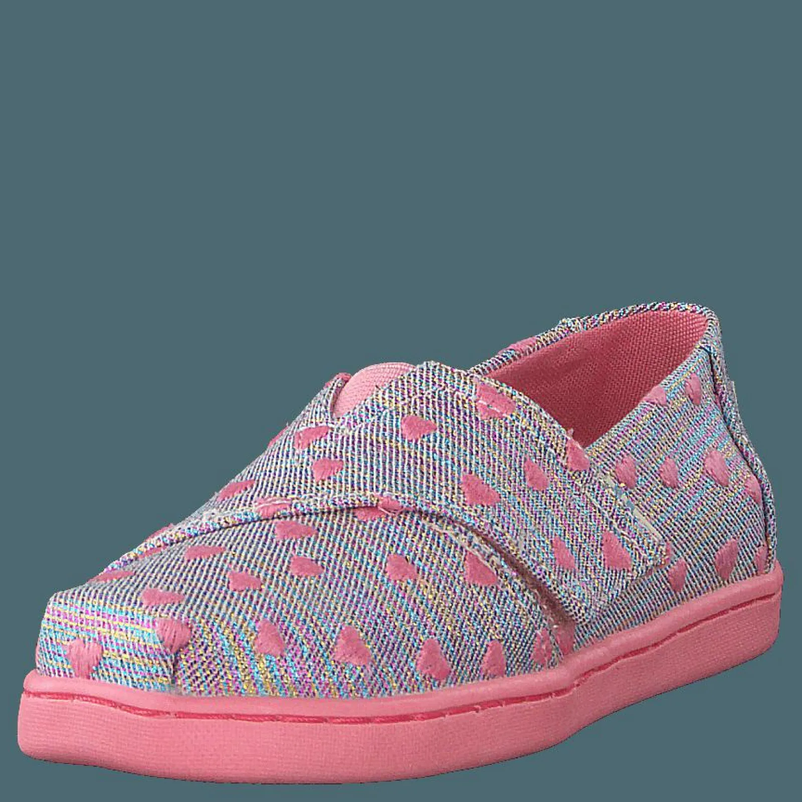 Toms är ett känt märke som erbjuder ett urval av skor för barn. De platta skorna är gjorda av textil och finns i beige, blå och rosa färger.