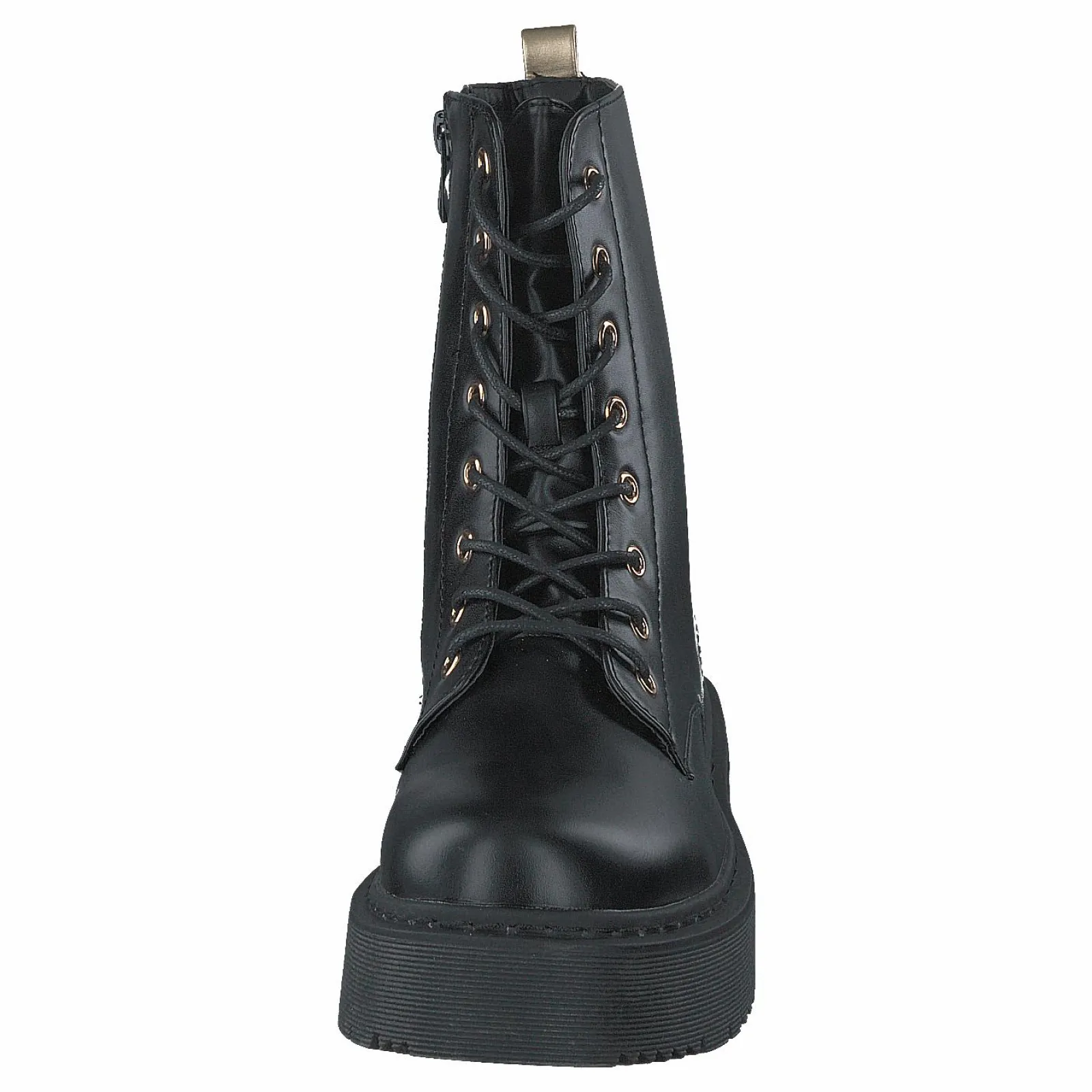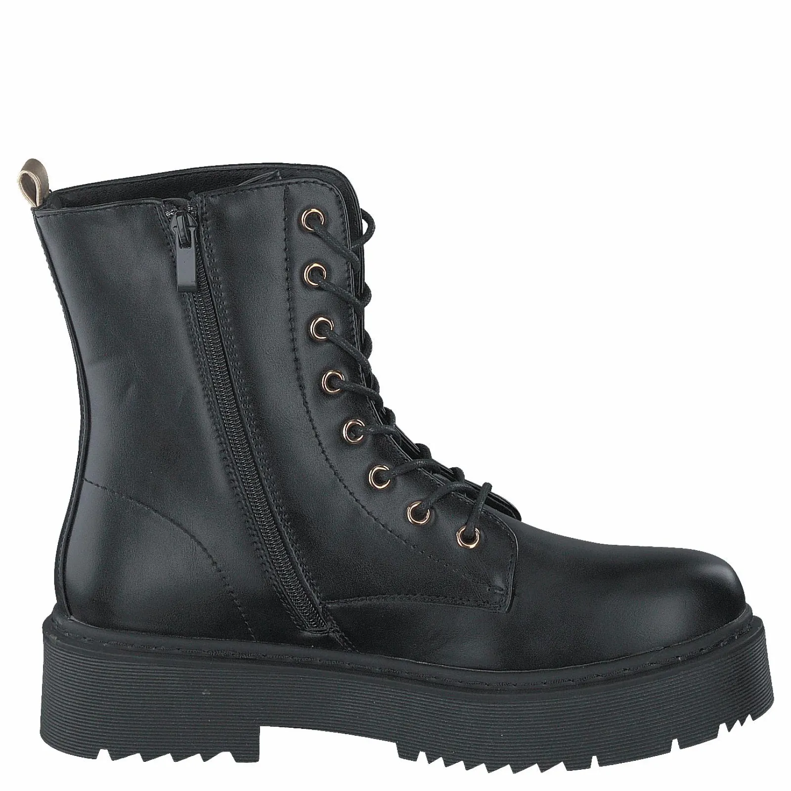 Stövel med trendiga detaljer i guld, snörning men med dragkedja på insidan, ovandel i syntet, med mjukt fleecefoder.