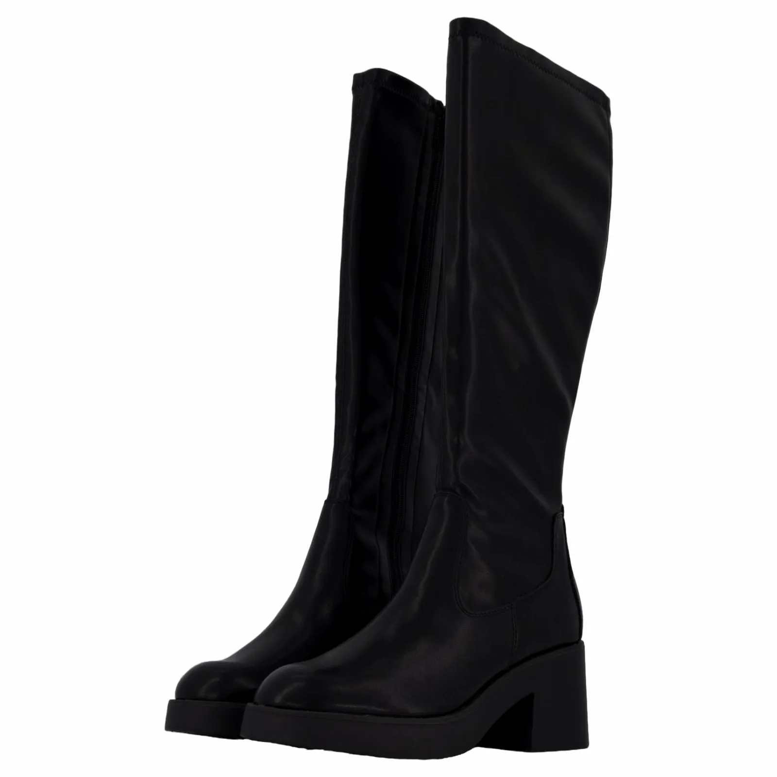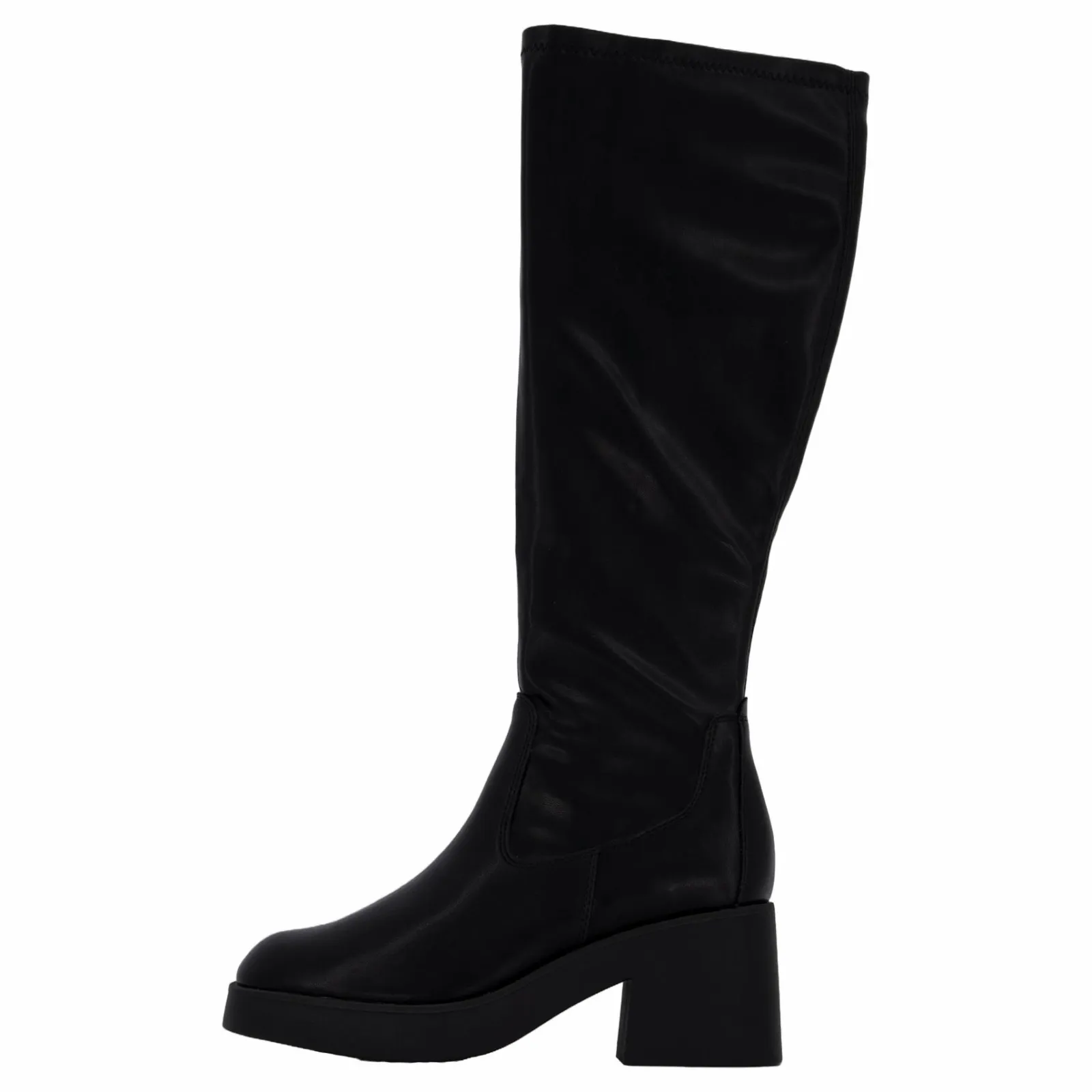 Snygg stövel med plattformssula. Skaft i stretchigt konstläder. Dragkedja på insidan. Klackhöjd 7 cm, skafthöjd 38 cm. En fashionabel stövel som passar alla tillfällen!