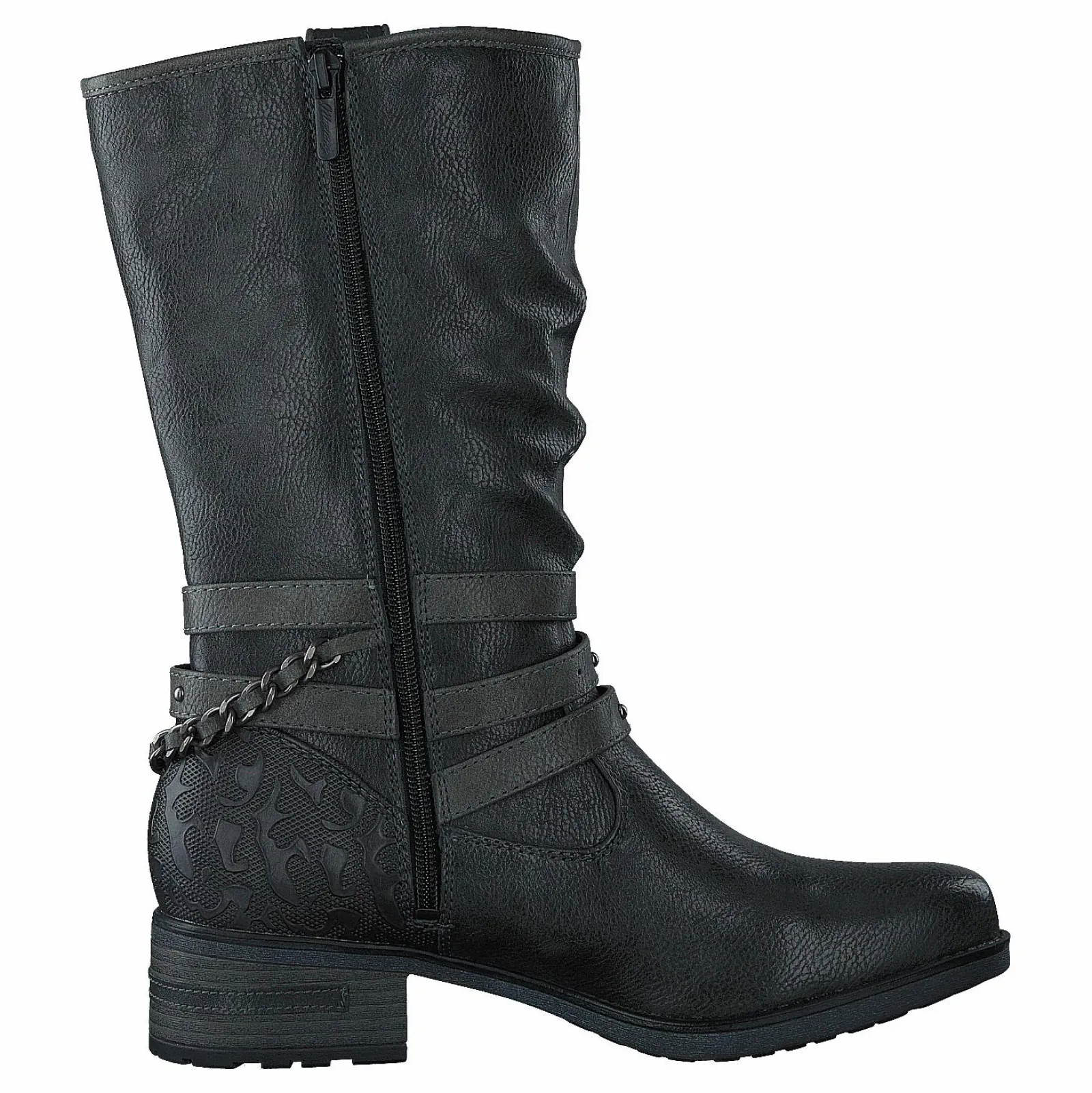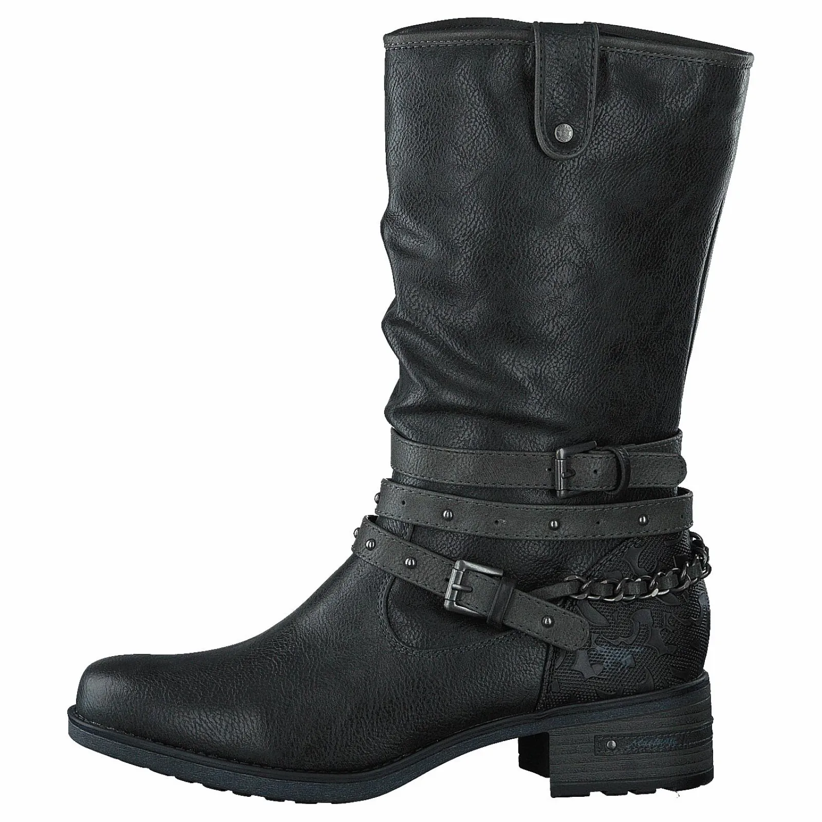 1229605 är en avslappnad hög stövel för kvinnor från märket Mustang. De är gjorda av syntetiska material och har en svart färg. De fungerar bra för personer som har en avslappnad stil.