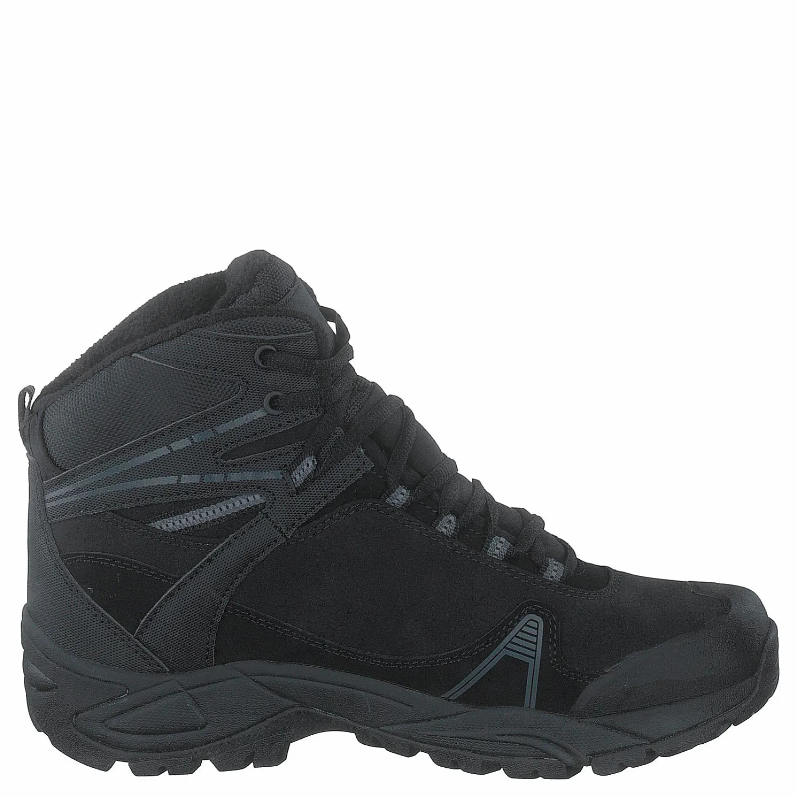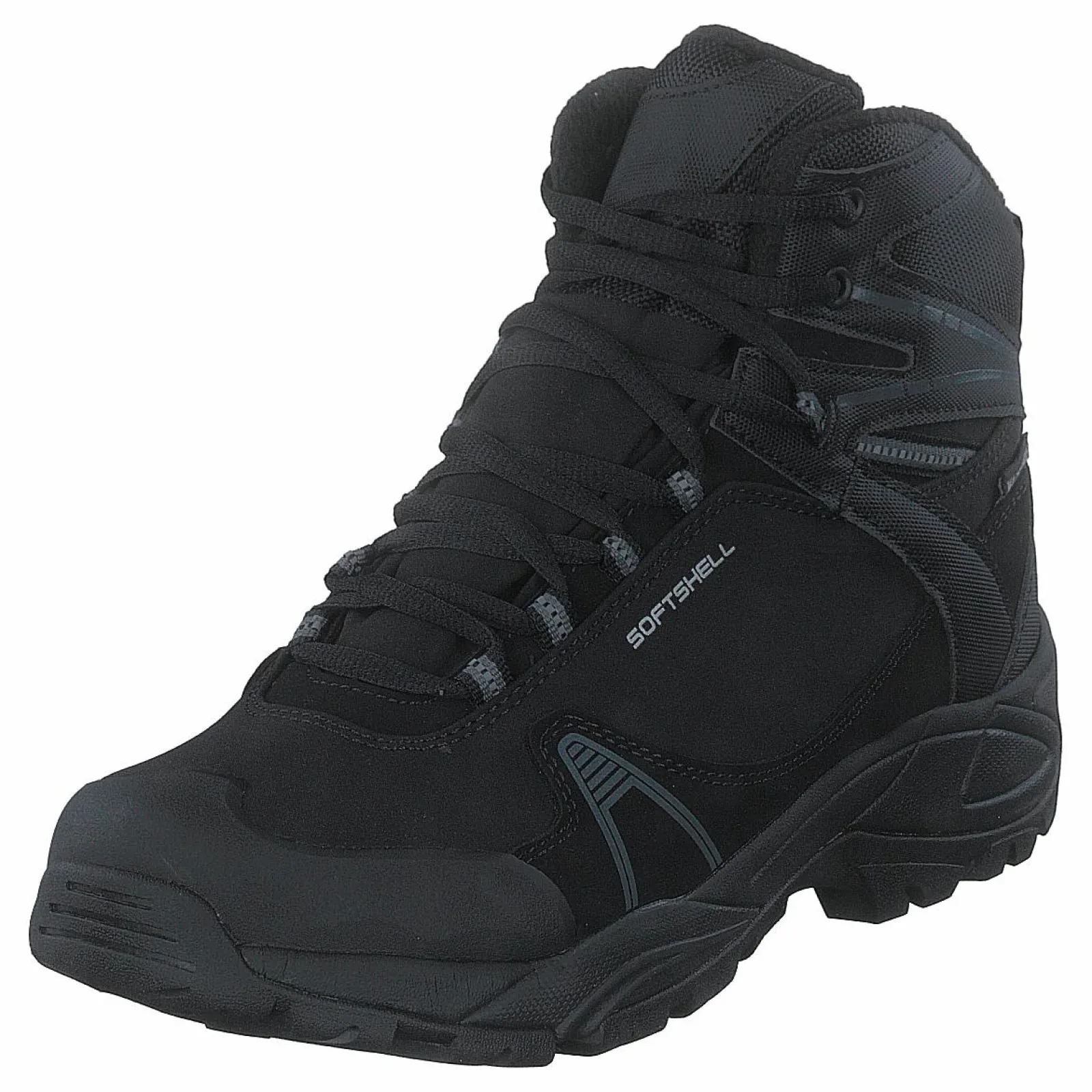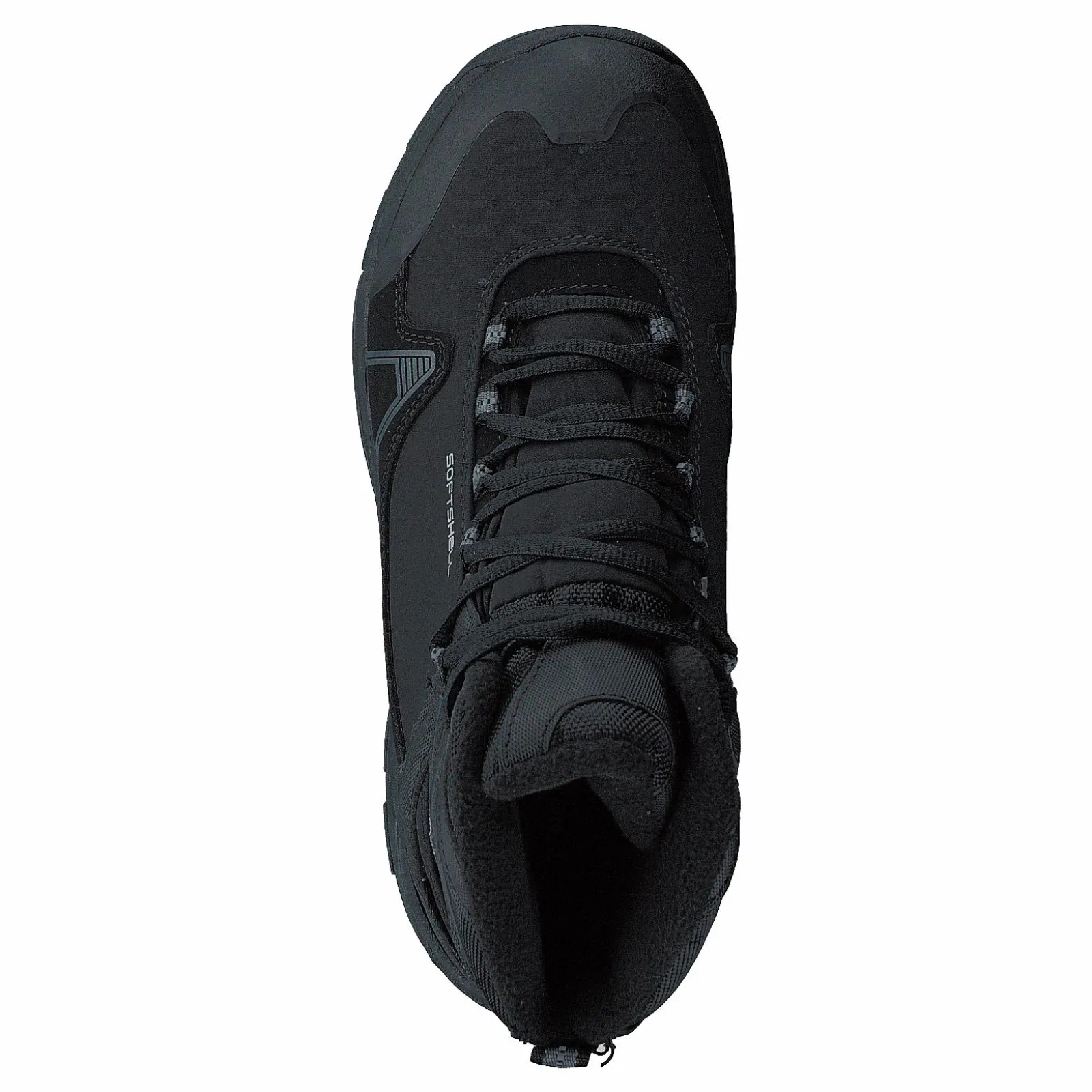 Varmfodrade vandringskängor med vattentätt membran, med delar i softshell. Mjukt och varmt fleecefoder och grovmönstrad yttersula.