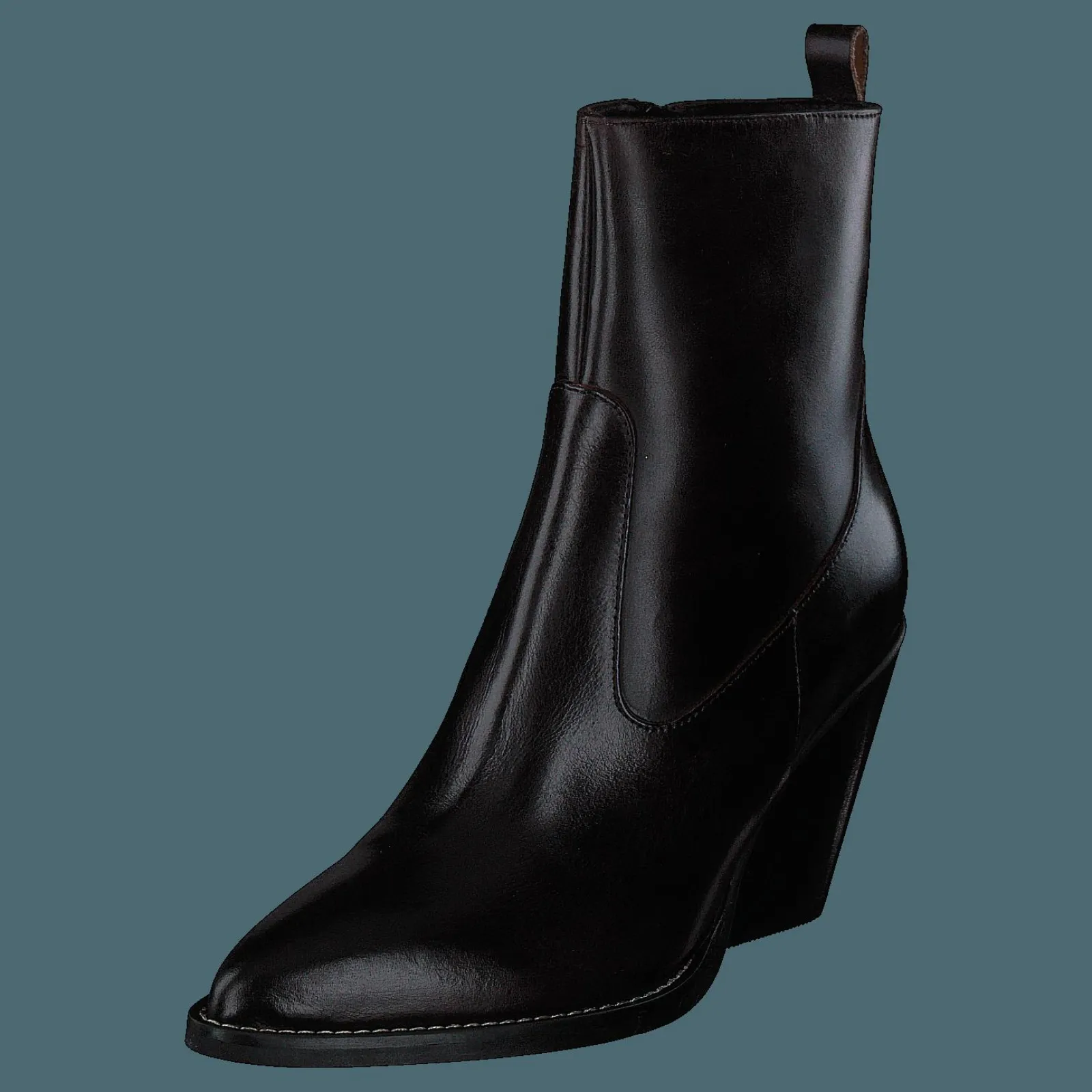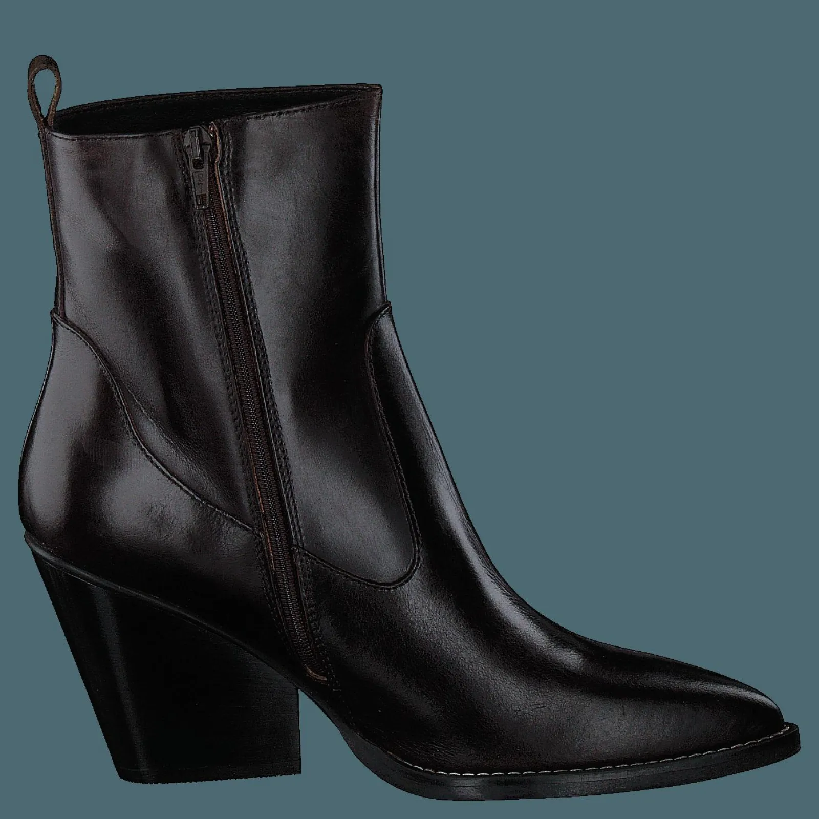 Nude of Scandinavia är ett danskt skoföretag som grundades 1989. De har ett brett utbud av högkvalitativa läderstövlar, skor och sandaler. Kim är ett par snygga, avslappnade höga stövlar i svart läder med dragkedja i sidan.