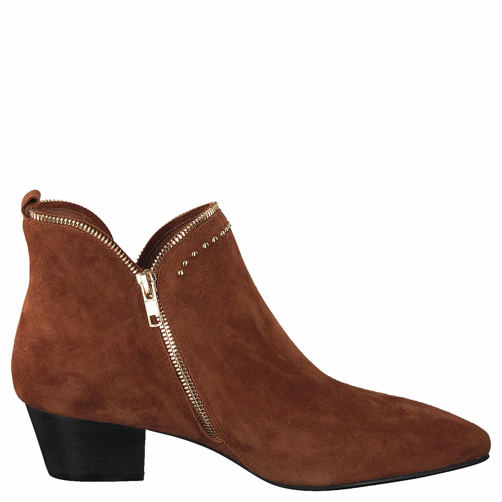 Detta är det perfekta paret stövlar för din vardagliga outfit. Den bruna mockan och metallhälen ger denna stövel en touch av elegans och den matta finishen gör dem lätta att klä upp eller ner. Sätt pricken över i:et på din look med dessa stövlar, guldtillbehör och en matchande clutch!