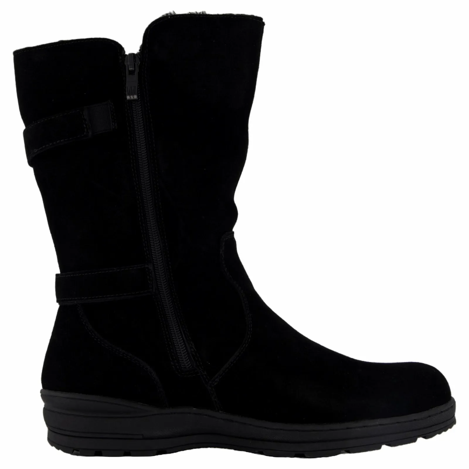 Varmfodrad känga med sula med mycket gummi och bra grepp. Gosigt foder även i innersulan. Lös innersula. Dragkedja. Vattenavvisande förimpregnerad mocka.
